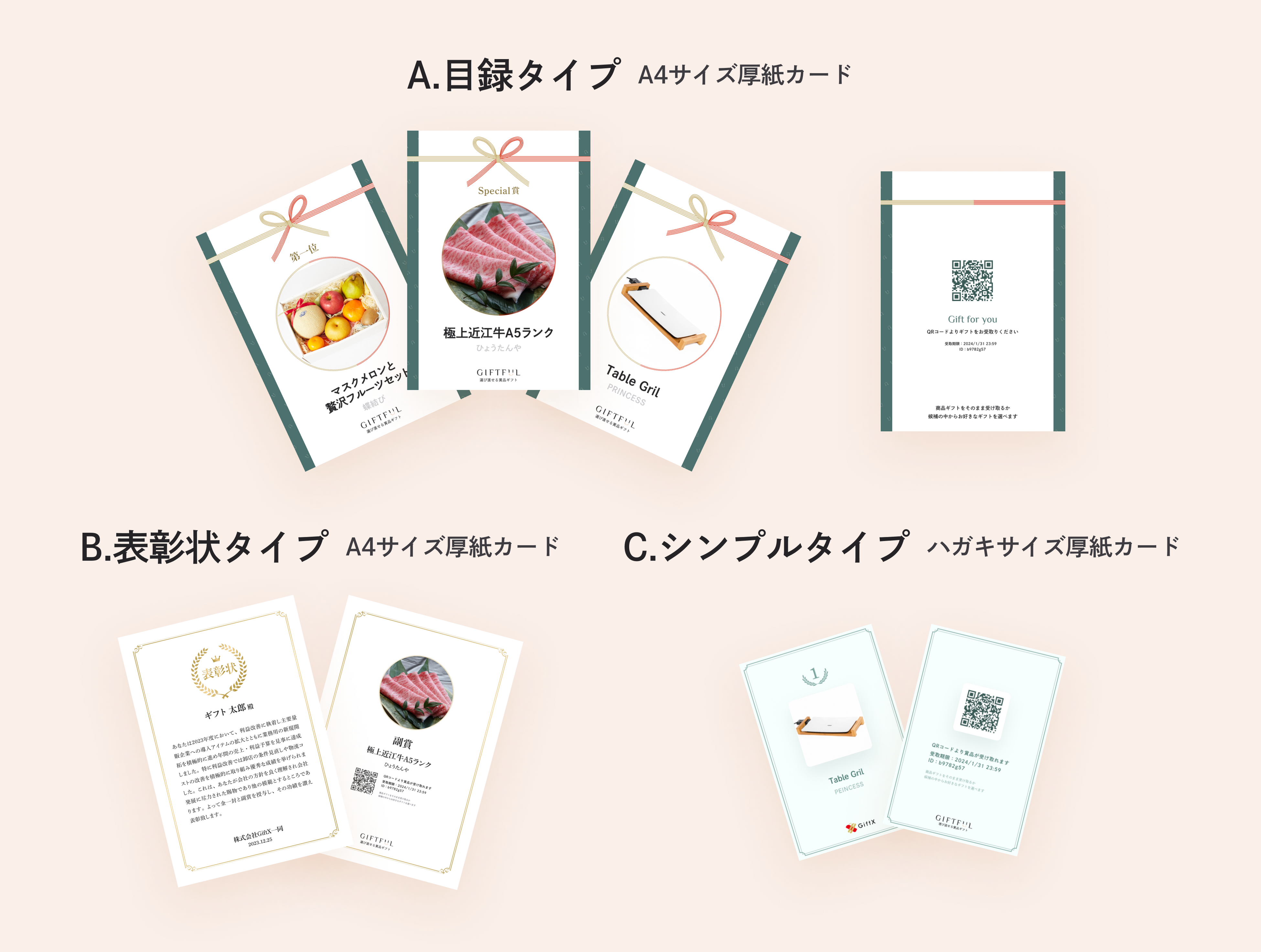 この度、年末の社内イベント幹事さん応援キャンペーンとして、景品・賞品としてGIFTFULをご利用いただくみなさまに、目録ギフトカードを無料でプレゼントいたします。(※通常は有料発行)デザインは、目録タイプ・表彰状タイプ・シンプルタイプの3種類。さらに、複数の景品注文の際に、ひとつひとつURLを発行せずとも必要事項をシートに記入いただくだけのまとめて一括注文を受け付けます。