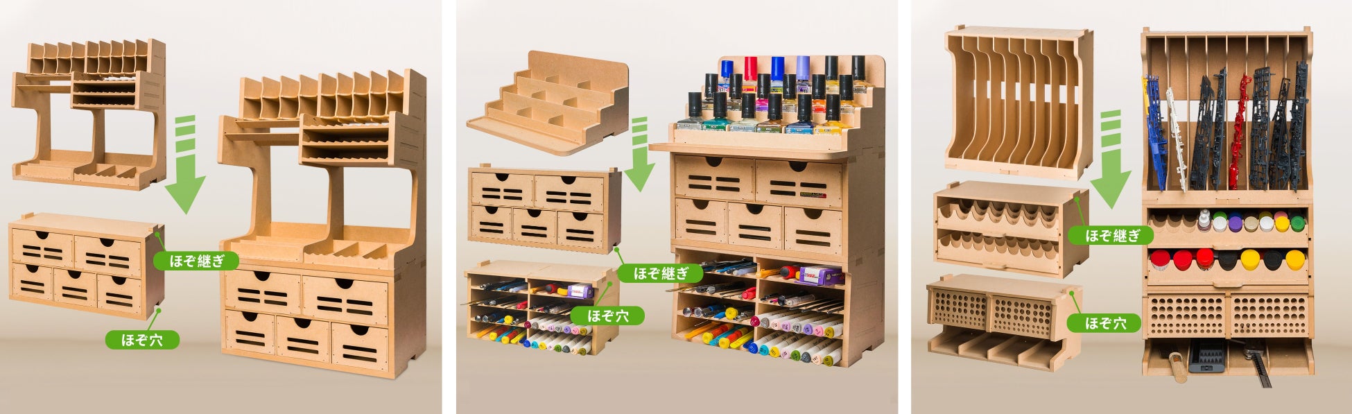 「GKシリーズ」はプラモデル製作時に必要な工具や塗装をきれいに収納でき、限られたスペースを最大限に活用できるホビーツール収納ラックです。