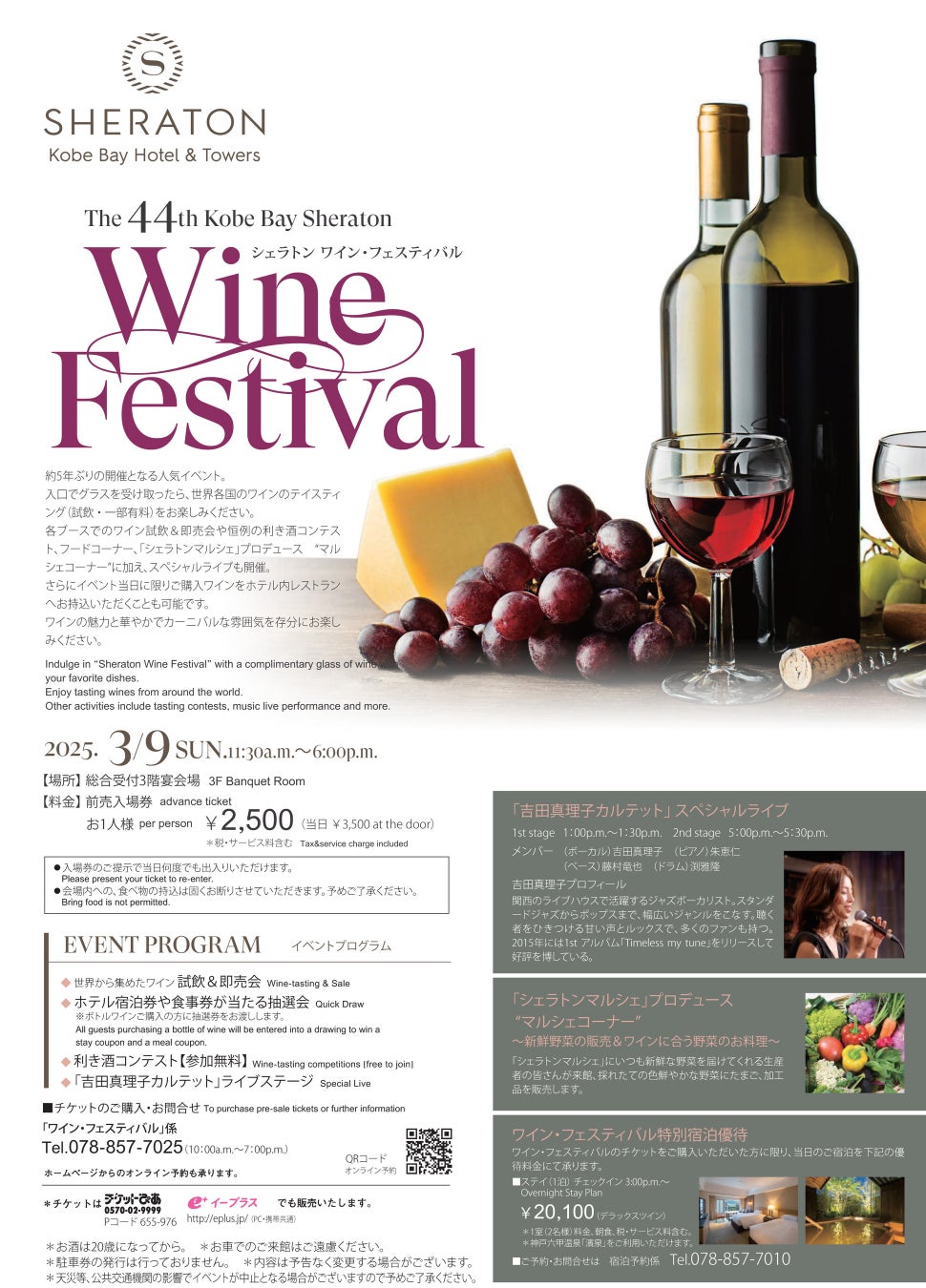 「ワイン・フェスティバル」係 TEL:078-857-7025 (10:00a.m.~7:00p.m.)