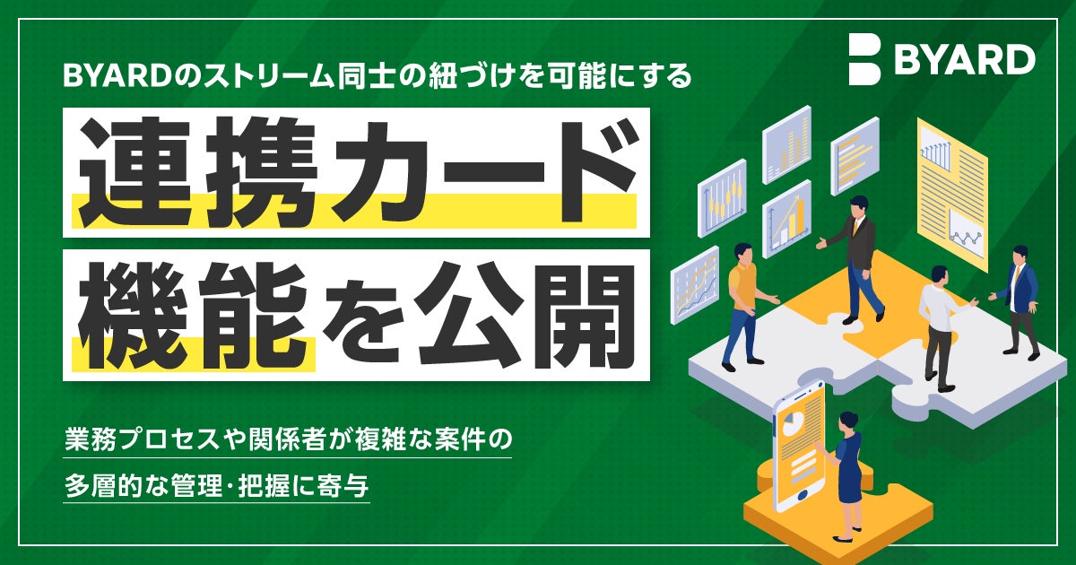 株式会社BYARD(本社:東京都港区、代表取締役CEO:武内 俊介)が運営する「BYARD(バイアード)」は、関連するストリーム同士を紐づけて業務プロセス全体の管理をしやすくする「連携カード」機能を公開しました。