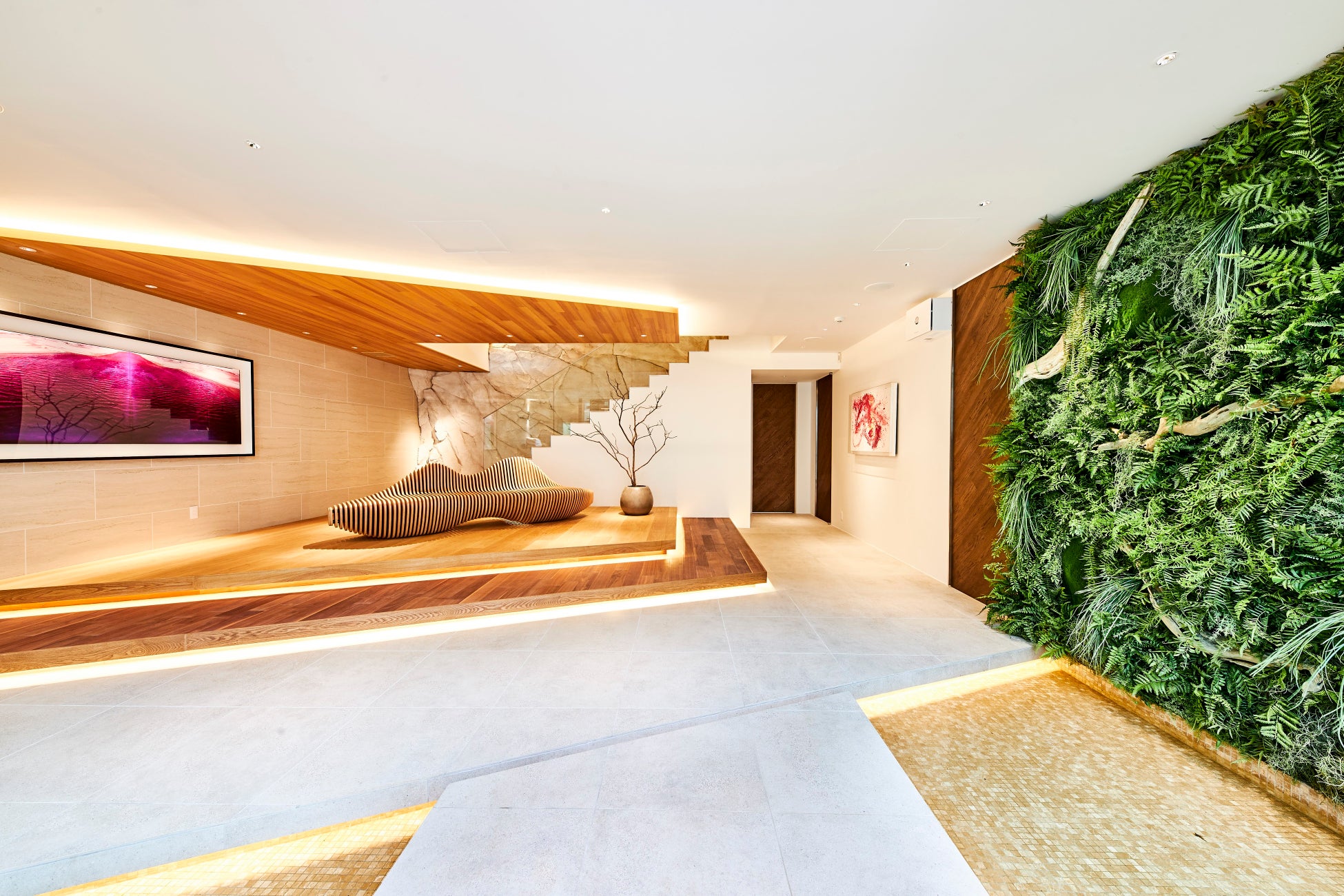 伝統的な日本の水盤からインスピレーションを得て、1階全体にシームレスに流れる連続的なインテリア水景は、即座に静寂を確立しながら、ユニークな空間移行要素を生み出しています。このインテリアランドスケープは、美的な中心であると同時に精神的な旅として機能し、従来のエントランス体験を瞑想的なラグジュアリーへと変容させます。