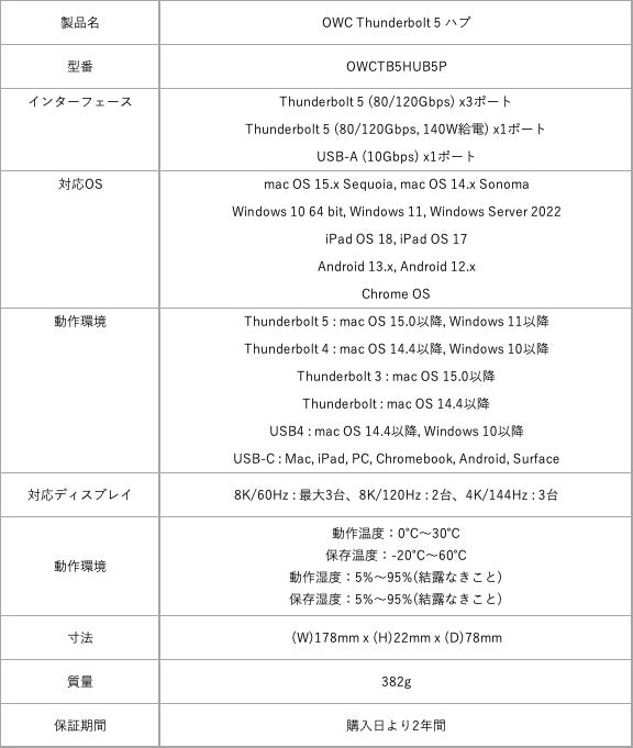 日本語サイト https://www.owcasia.jp/docks/owc-thunderbolt-5-hub
