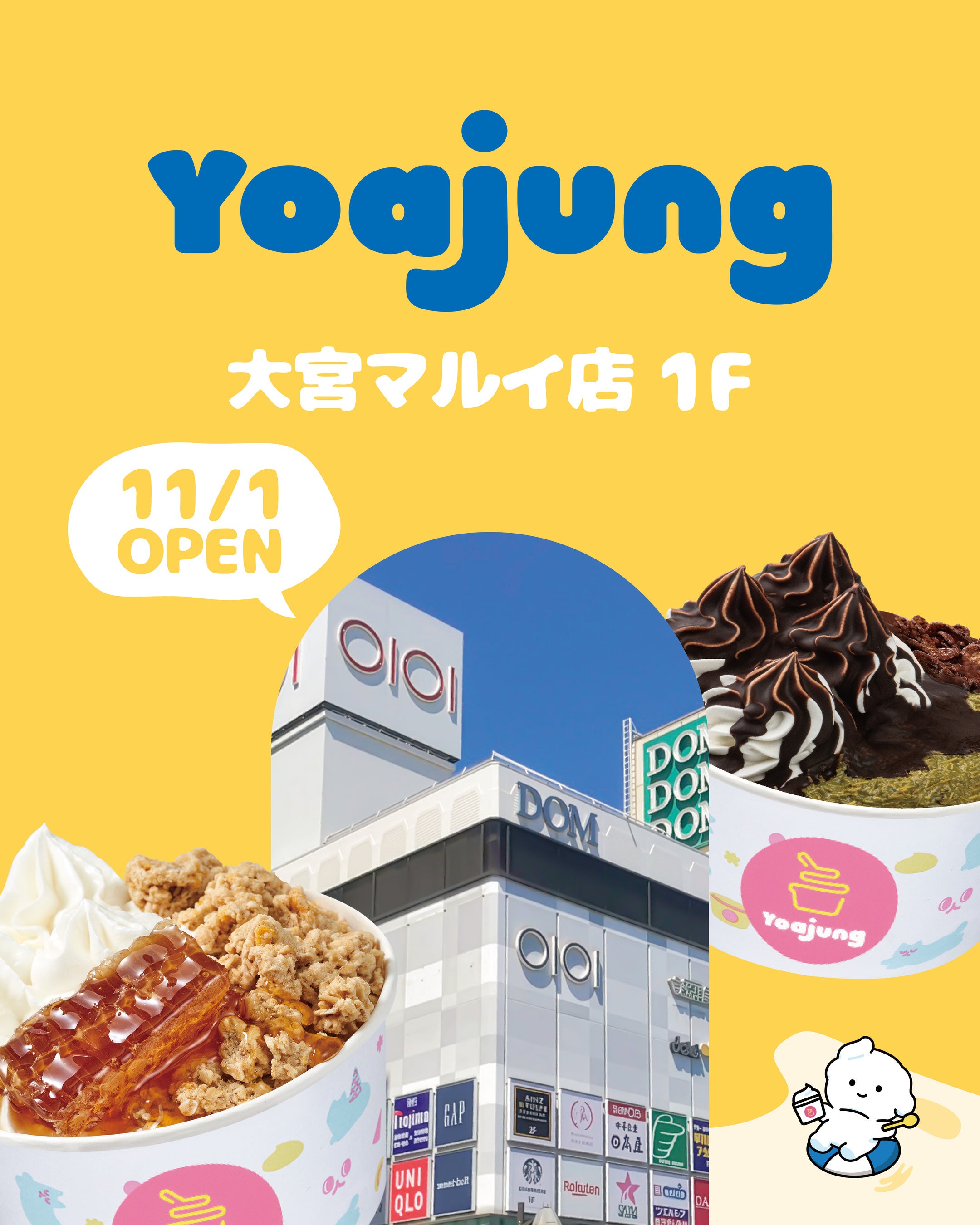 韓国発のフローズンヨーグルトブランドYOAJUNG(ヨアジョン)を韓国食品スーパー「大宮マルイ店」内にFC店舗として出店することを決定いたしました。2025年11月1日のオープンを予定しており“買い物もスイーツも韓国気分で楽しめる新感覚スポット”として展開いたします。