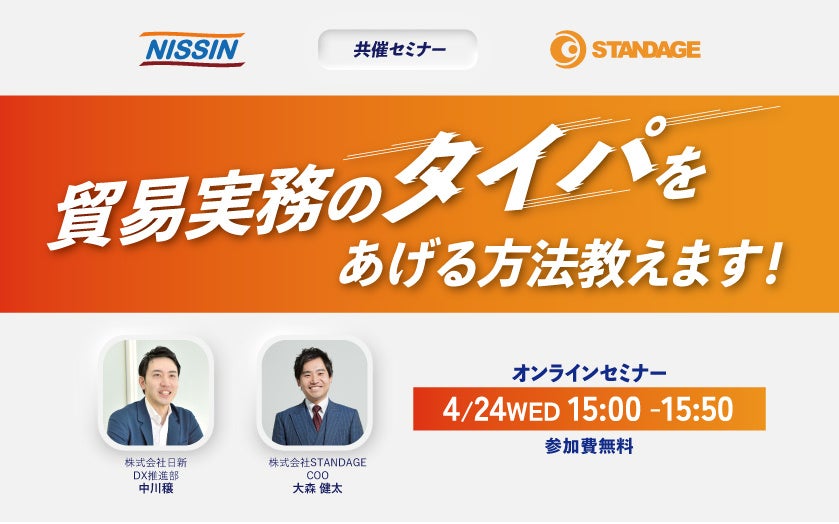 貿易実務のタイパをあげる方法教えます! 4月24日(水) 無料セミナー開催のご案内 【日新×STANDAGE】