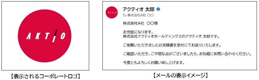 こうした背景を受け、アクティオホールディングスは企業が送信するメールのアイコンにコーポレートロゴを表示する規格である「BIMI」を導入しました。「BIMI」の導入により、アクティオグループ5社(対象会社:アクティオホールディングス、(株)アクティオ、(株)シンテクノ、(株)アクティオトランスポート、(株)スタッフ・アクティオ)からのメールにはコーポレートロゴが表示(※1)され、受信者はアクティオグループ5社からのメールが正規のものであることを、ロゴを通じて視覚的に確認できます。これにより、当社を騙ったなりすましメールを受信した方が被害に遭うリスクを低減いたします。今後、他グループ会社への導入も順次進めていく予定です。