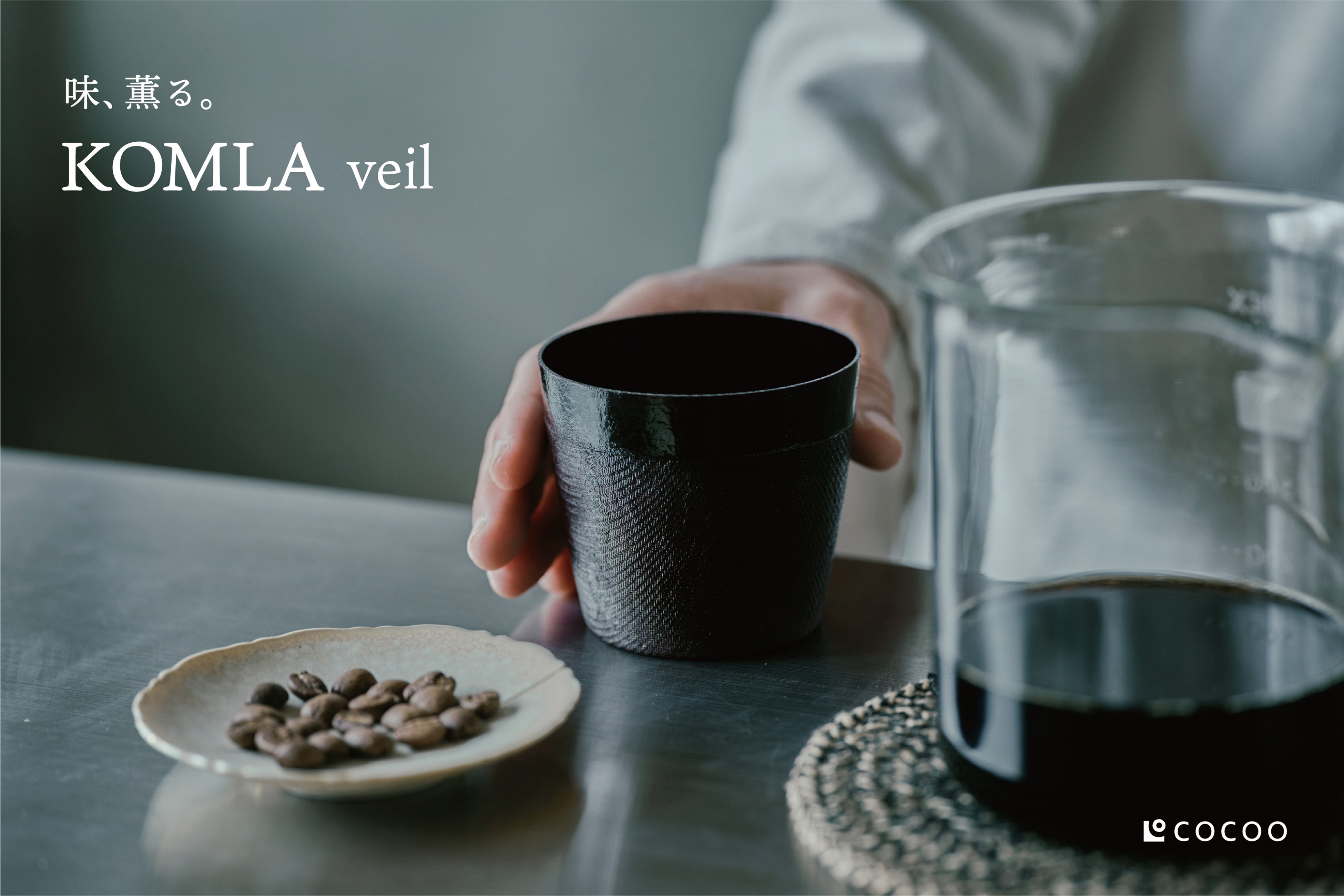 合同会社COCOO(本社:京都府京都市)が手掛ける漆の日用品ブランド「COCOO(コクー)」より、紙漆カップの新シリーズ「KOMLA veil(コムラ ヴェール)」が登場します。極薄でなめらかな仕上げにより、味と薫りを引き出す新しい体感を実現。2026年4月18日(土)より順次発売します。