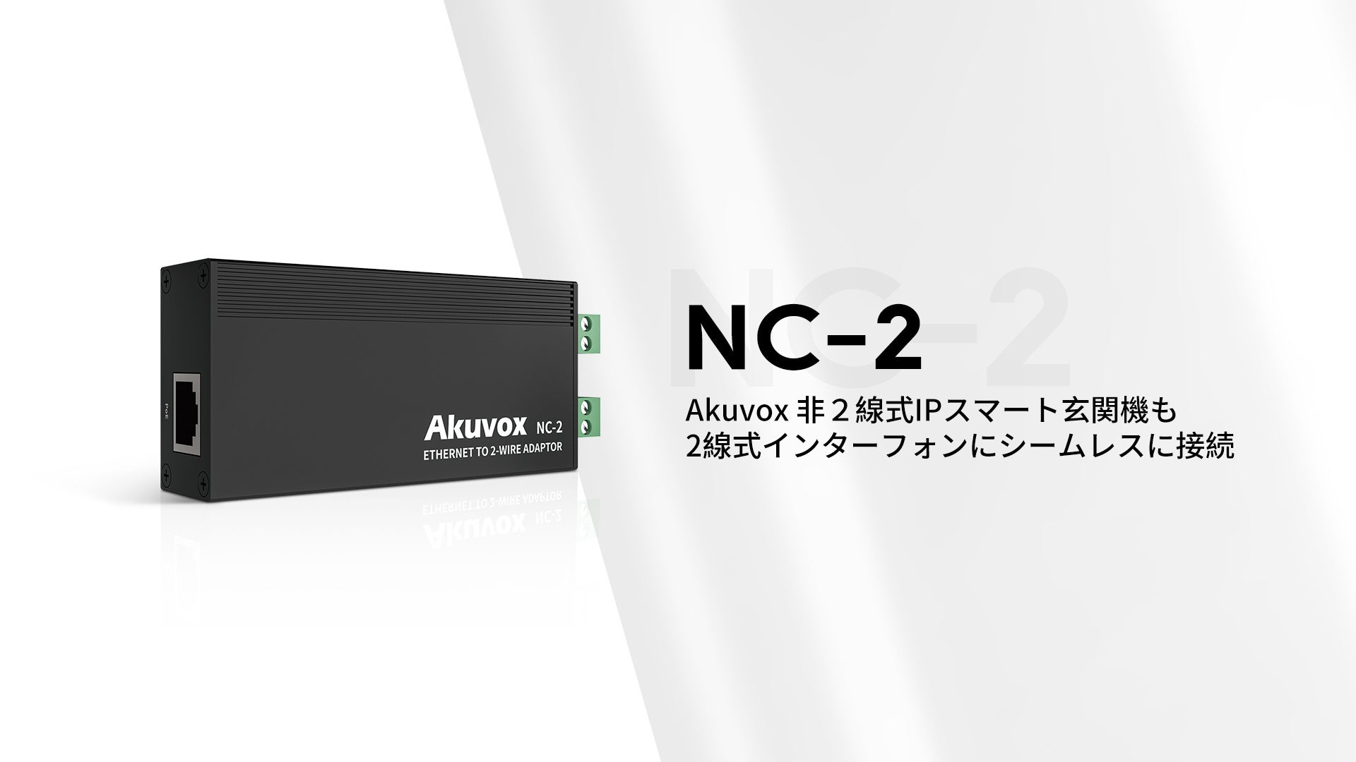 AkuvoxのNC-2 2芯変換コンバーターにより、Akuvox 非2線式IPスマート玄関機も2線式インターフォンをシームレスに接続できるようになりました。配線工事が不要で、既存の2ワイヤーケーブルを再利用することで、古いインターフォンシステムの簡単なアップグレードが可能に。これにより、玄関機は2線式にとらわれず、多彩なIPベースのインターフォンも選択可能になります。また、2芯線によるデバイス間での長距離伝送が可能なので、集合住宅に効果的に対応できます。