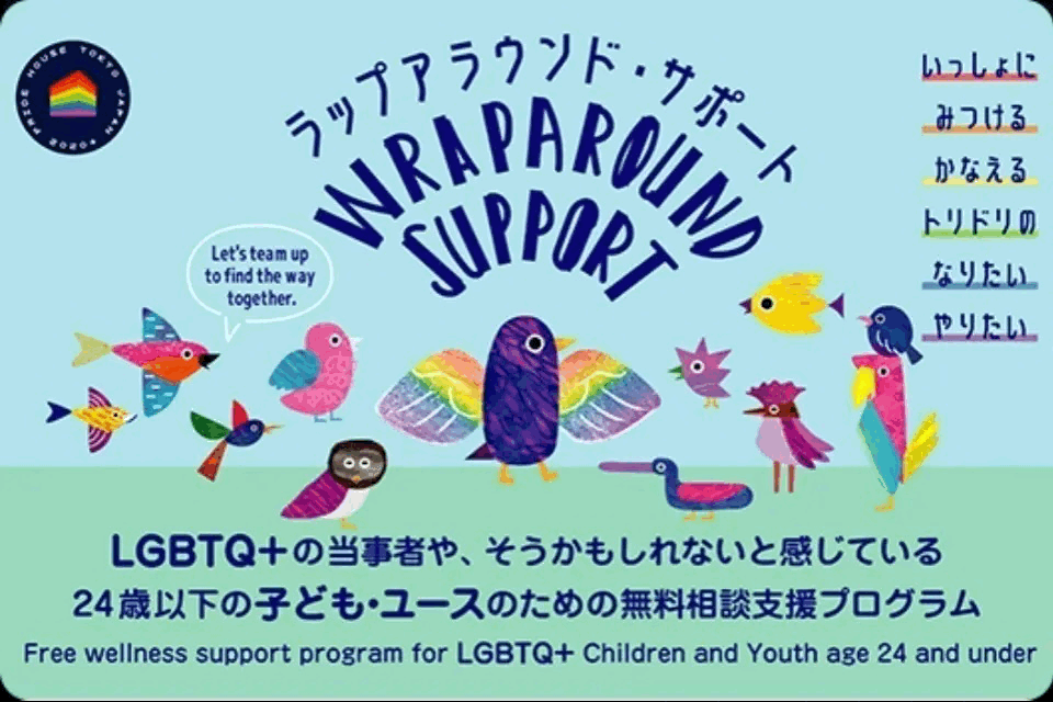 「LGBTQ+の子ども・ユース向け無料相談支援プログラム」「LGBTQ+いのちの相談窓口」「弁護士によるLGBTQ+の法律相談」といった5つの相談窓口を設け、LGBTQ+に対する無料の相談支援を行っています。LGBTQ+当事者、当事者かもしれない人、そのご家族やご友人も相談可能です。いずれもLGBTQ+の子どもやユース(及び大人)への相談支援経験や、LGBTQ+に関する研修講師経験のあるスタッフなどが対応します。
