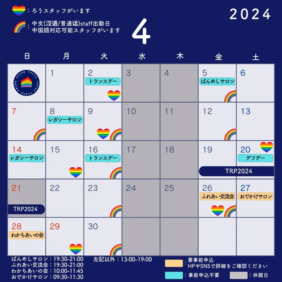 レガシーではさまざまなイベントや交流会を企画・運営しています。ユース向けの交流会やゲーム、サロンスタッフや訪問者との交流を通じて、自分らしく過ごすことを目的とした「レガシーサロン」、夕食を各自持参して食べる「ばんめしサロン」、近隣の公園などへピクニックをする「おでかけサロン」など多様なイベントを開催。また、多様なトランスジェンダーの人たちの「出会う、知る、つながる」交流の場づくりである「トランスデー」、ろうLGBTQ+当事者や手話通訳士など多様な方が集う「デフデー」など、より多くの人々が足を運びやすくなるような特別な日も設けています。