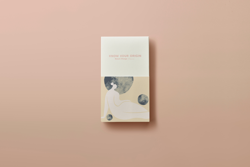 今年のホリデーラッピングのデザインテーマは「女性と月」。商品パッケージにも使用され、KNOW YOUR ORIGINのキーカラーでもある「ヌード」から着想した、やわらかなトーンとフォルムによる女性のイラストが描かれています。また、女性のサイクルに重要な意味を持つ「月」のモチーフをデザインに取り入れ、女性の美と自然のリズムへの敬意を表現しました。