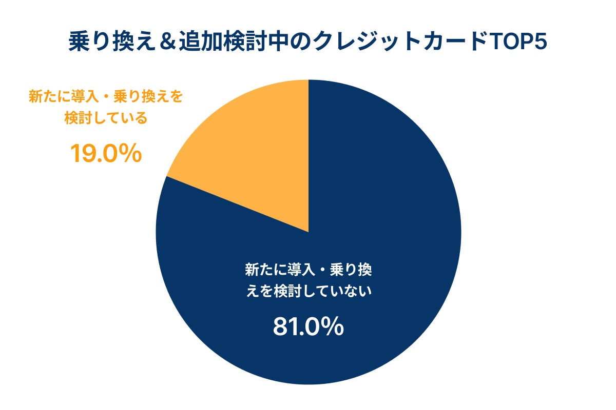 8割以上が「検討していない」と回答しており、一度導入した法人カードは長期間使われる傾向が強いことがわかります。これは口座設定や経理処理の変更負担を避けたいという実務上の理由が大きいでしょう。