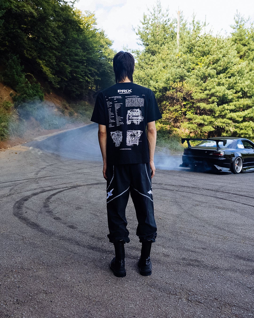 今回のカプセルコレクションはPRIX と PFUSAの創設者、Esther NgとChris Phanのクリエイティブ原点に立ち返り、日本のドリフト文化の核心に迫った。ビデオゲームのNFS、Forza、Gran Turismoからの影響や、「頭文字D」などのマンガやアニメへの愛情がそのインスピレーションとなっている。Esther とChris の青春時代からの影響に捉え、峠サーキットやJDMカー(国産車)のエッセンスを鮮やかに表現している。