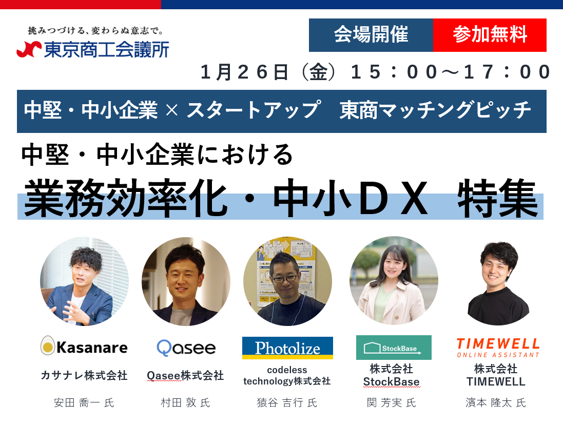 東京商工会議所イノベーション・スタートアップ委員会が主催するこのイベントは、中堅・中小企業の経営課題解決に資するサービスを提供するスタートアップによるピッチと交流の場を設け、業務効率化及びデジタルトランスフォーメーション(DX)の推進を図ることを目的としています。