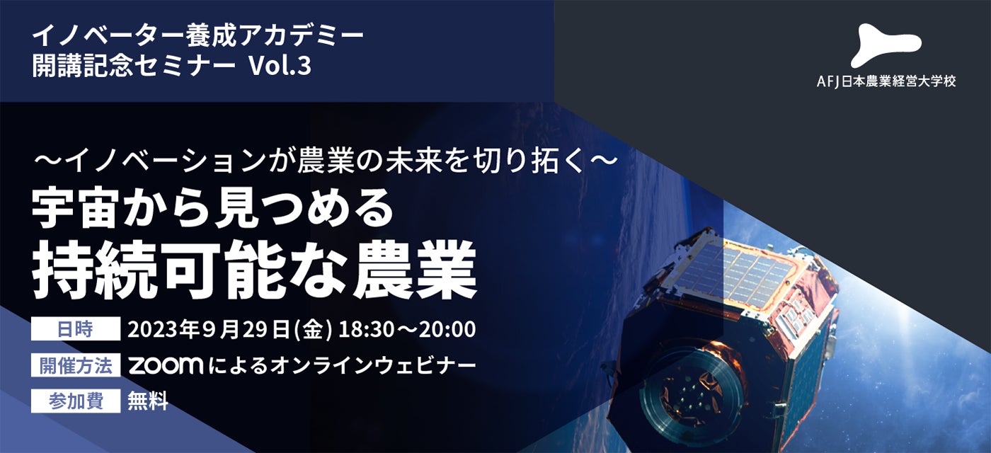 イノベーター養成アカデミー開講記念セミナー第三弾のお知らせ ~イノベーションが農業の未来を切り拓く~ 宇宙から見つめる持続可能な農業