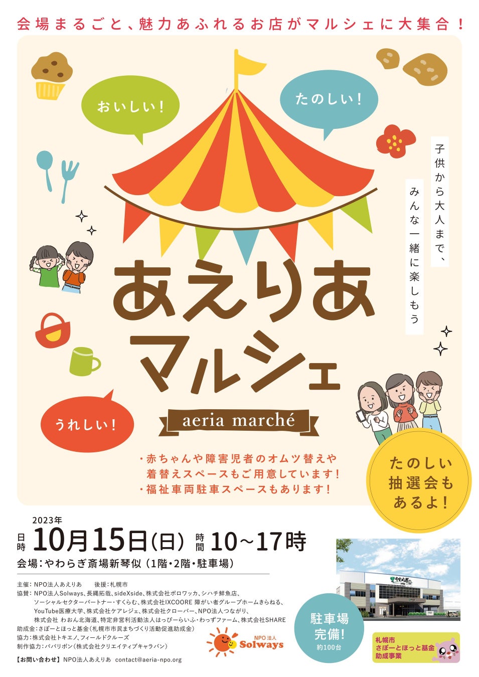 あえりあマルシェ開催!「おいしい」「たのしい」「うれしい」から「気付いたら福祉や介護にも触れちゃってる」/2023年10月15日(日)@やわらぎ斎場新琴似