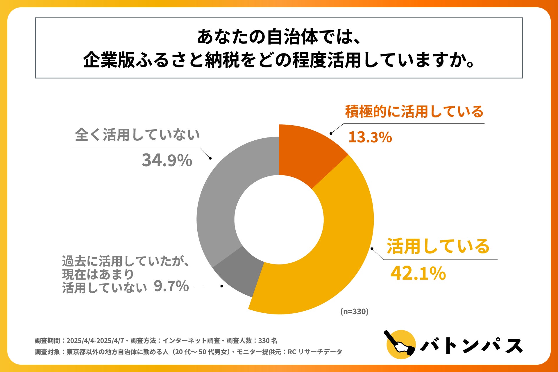東京都以外の地方自治体職員の半数以上が、自身が勤める自治体で企業版ふるさと納税を活用していると回答