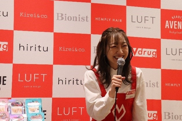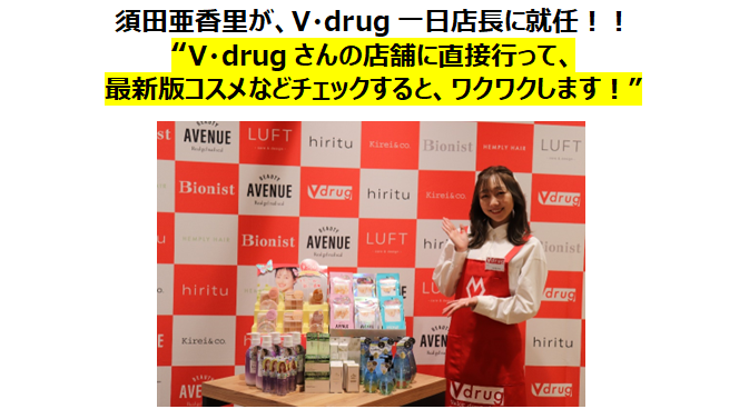 イベントでは、2022年秋にSKE48を卒業し、現在はラジオや新聞連載など、多方面で活躍中のタレント・須田亜香里さんにV・drug一日店長に就任いただきました。