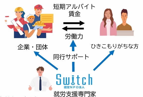 宮城県を中心に若者支援に取り組む『認定NPO法人Switch』は、この度、「仙台市市民協働事業提案制度令和7年度採択事業」として、「ひきこもり者への支援付き短期アルバイトの提供と、企業ネットワークの構築事業」を仙台市障害者支援課と協働してスタートすることとなりました。当法人は、長年多様な課題を抱えた若者に対し、様々な手法で就労支援に取り組んできましたが、その実績を活かし、今回の事業に取り組んでまいります。