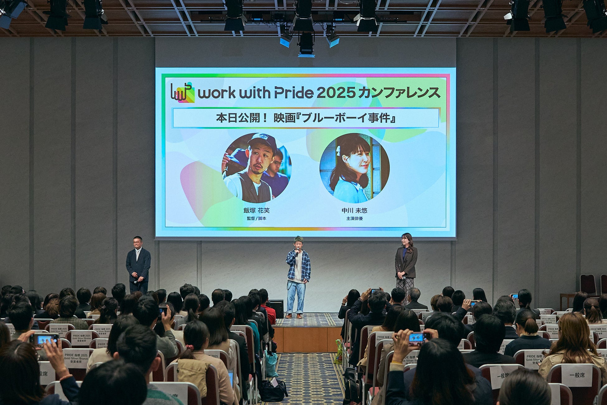 カンファレンスの最後には、1965年に起きた事件を題材に映像化した映画『ブルーボーイ事件』の監督・飯塚花笑氏と主演の中川未悠氏が登壇。同日11月14日(金)の公開を記念に、映画に込めたそれぞれの想いを伝えました。
