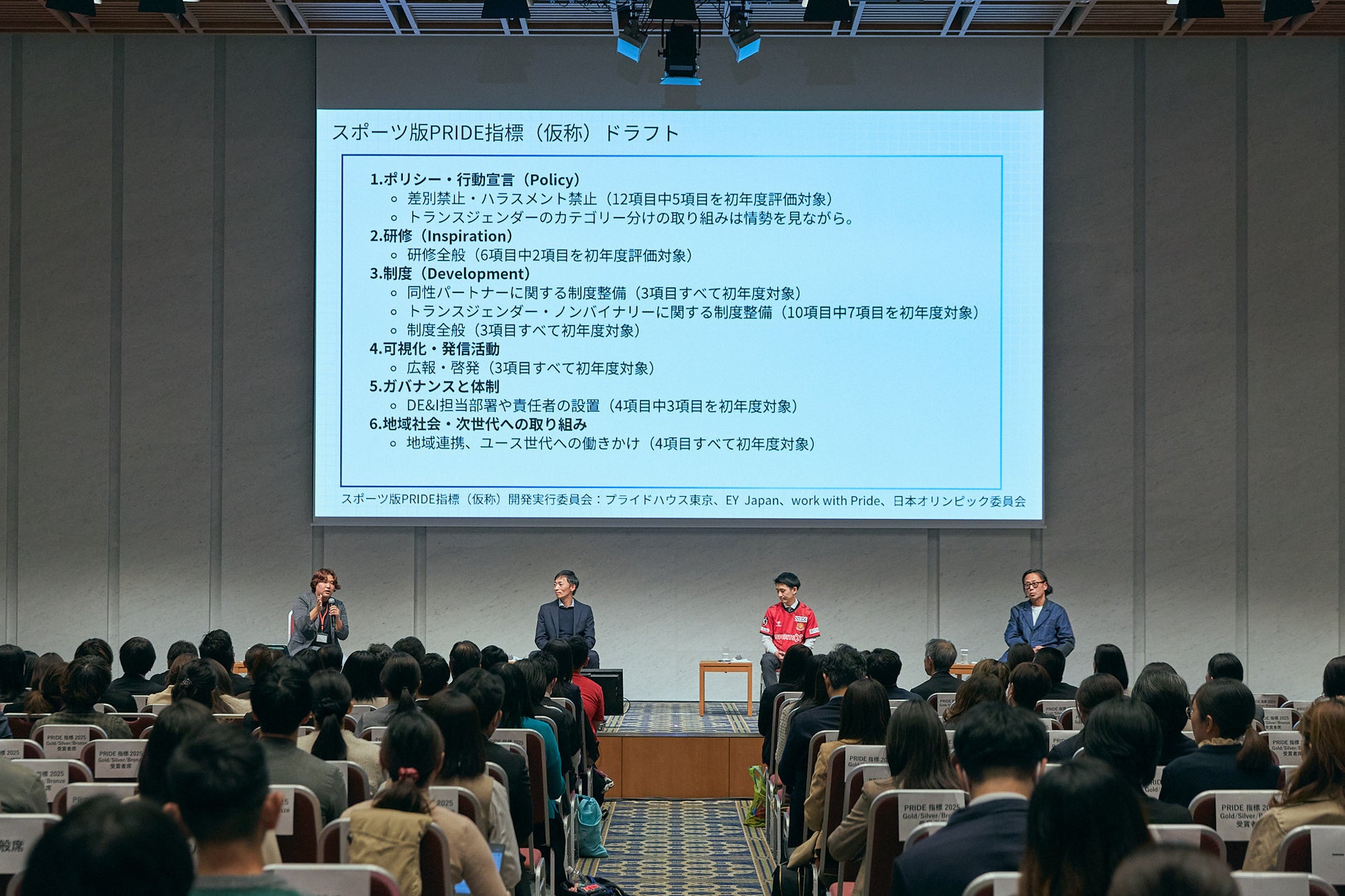 『work with Pride』は、LGBTQ+の人々が自分らしく働ける職場づくりを進めるため、日本国内の企業・団体の人事・人権・ダイバーシティ担当者を対象に開催される、年に一度のカンファレンス。職場でのLGBTQ+に関する取組を評価して「PRIDE指標」として企業を認定しています。海外で反DEIの逆風が生まれている中、今年は「日本のDEIの歩みを止めず、今こそ企業にできることを。」をテーマに開催。職場でのLGBTQ+に関する取り組み評価指標『PRIDE指標2025』認定企業の発表・表彰と、スポーツ版PRIDE指標(仮称)のドラフトを交えた意見交換を実施しました。