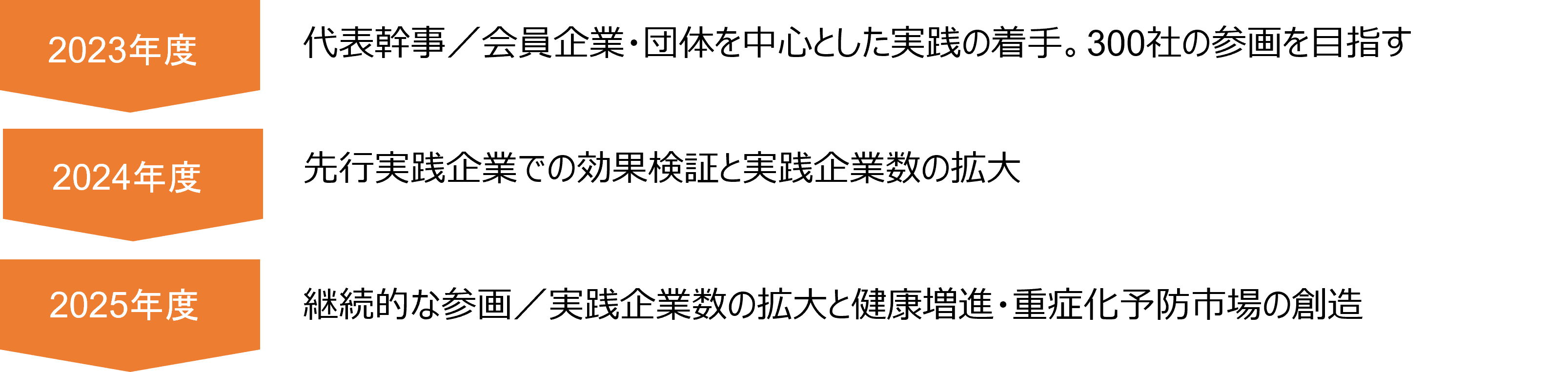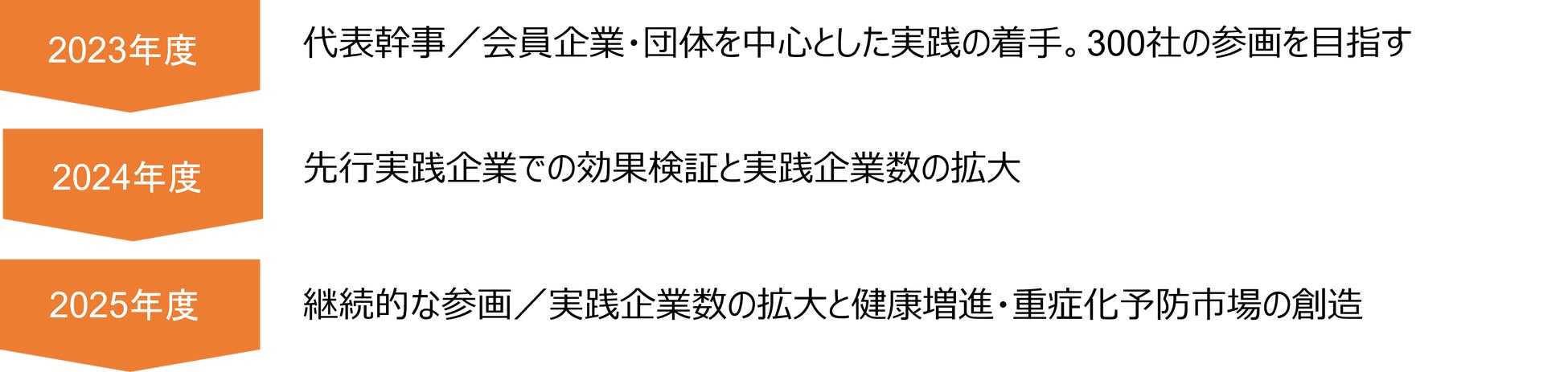 この度、6月30日設立時点で、「社員の健康をつうじた日本企業の活性化と健保の持続可能性の実現」というビジョンに共感頂ける100社超の企業・団体に参画をいただきました。今後も参画の呼びかけを継続すると共に、企業と健保が連携したコラボヘルスの推進を通じて、データドリブンの課題特定と解決策の実行、各種施策の評価を行っていきます。このように、データヘルス計画に基づくPDCAサイクルの着実な遂行を通じて、健康経営の型づくりと成果創出のためのソリューションの共創および産業界への実装を実現していきます。
