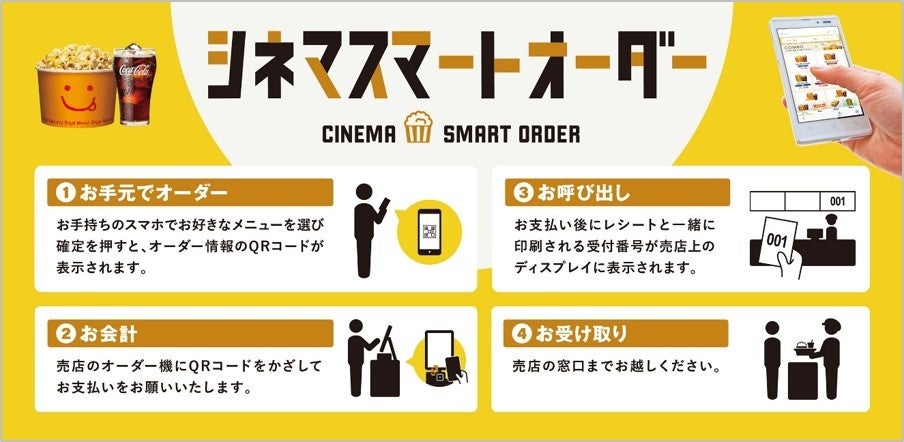 セルフオーダー機、お手持ちのスマホから気軽に注文 シネマスマートオーダー