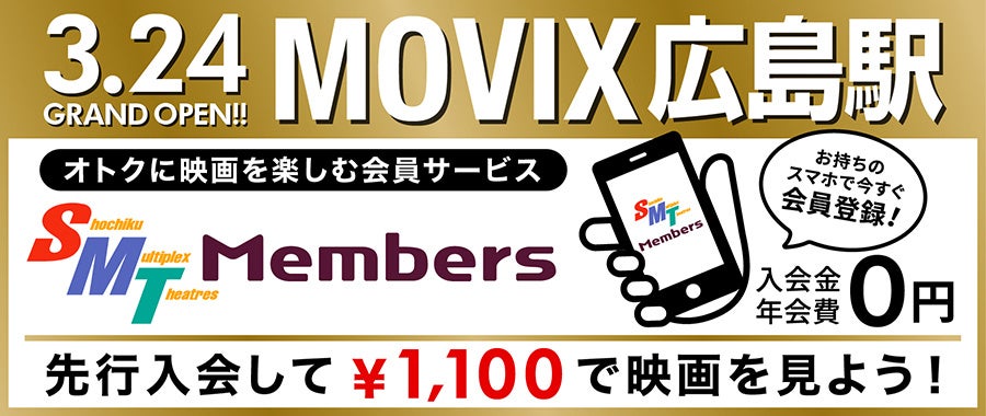 「SMT Members(SMT メンバーズ)」はMOVIX広島駅ほか松竹マルチプレックスシアターズが運営する全国の映画館で利用できる会員サービスです。