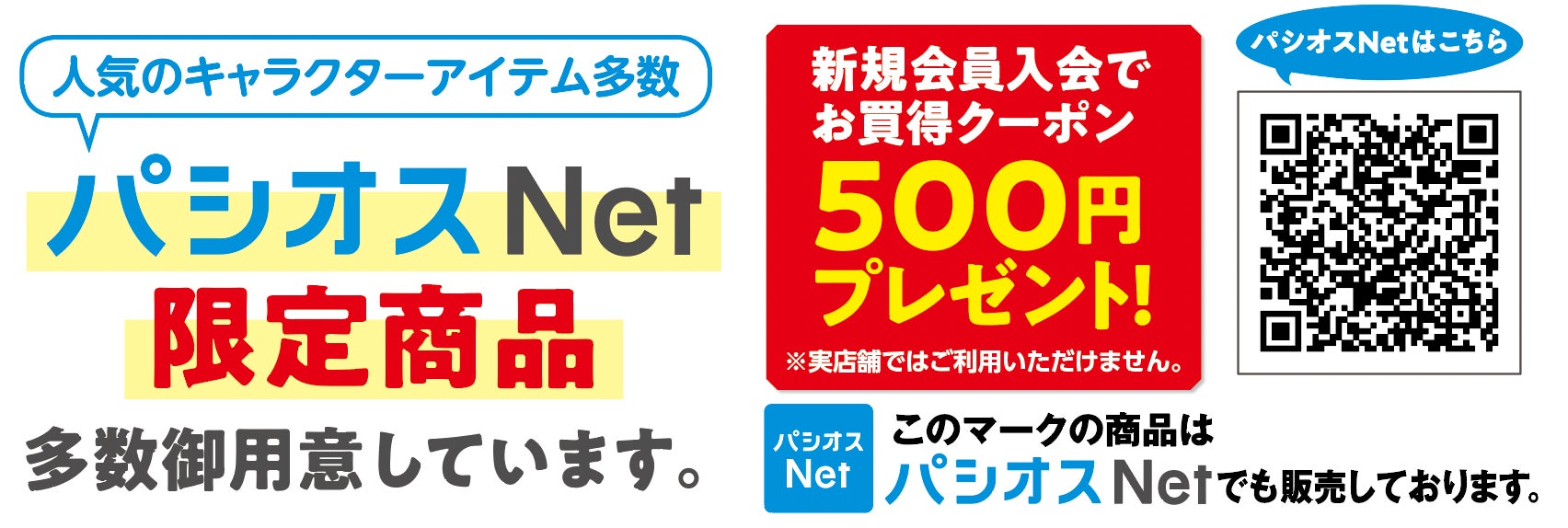 パシオスNet限定の人気キャラクターアイテムや新規会員入会でお得なクーポンのプレゼントなど、お得な企画をご用意しておりますので、合わせてご利用ください。(https://www.paseos-net.com/)