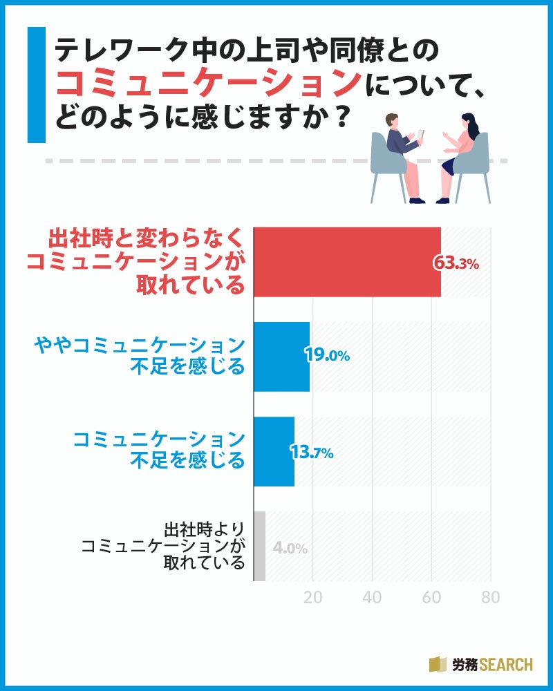 ・63.3%は「出社時と変わらなくコミュニケーションが取れている」