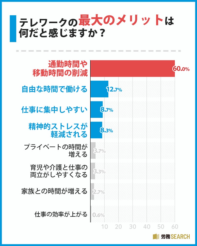 ・テレワーク最大のメリットは「通勤時間や移動時間の削減」