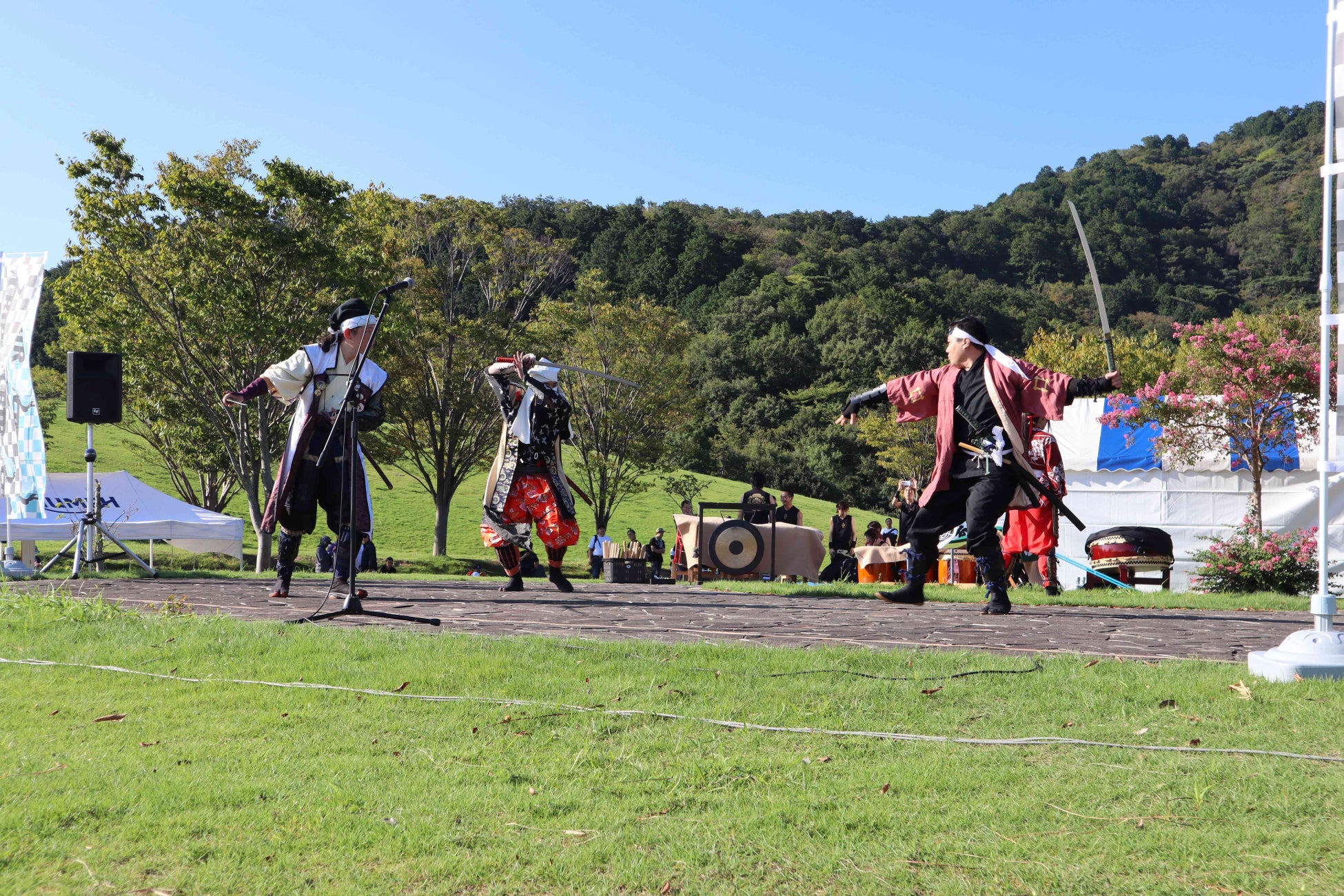 8時から始まったスタートセレモニーでは、オープニングアクトとしてあづち信長出陣太鼓のみなさんによる演奏、そしてひこね武将隊による出陣式が披露されました。