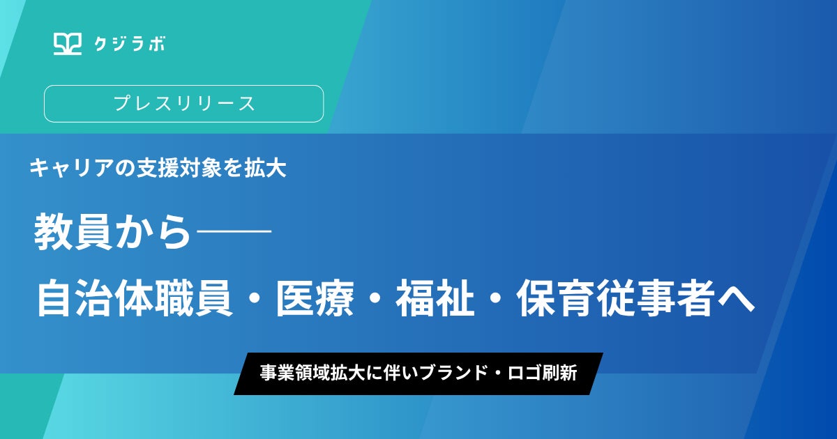 教員のキャリア支援を手がけてきた株式会社クジラボ(本社:福岡県福岡市、代表取締役:森實 泰司、以下「クジラボ」)は、支援対象を自治体職員や医療・福祉・保育業界で働く方々にも拡大し、リブランディングを実施しました。新たに掲げたミッションとブランドロゴのもとで、社会を支える人たちのキャリアの可能性をひらく挑戦を続けていきます。