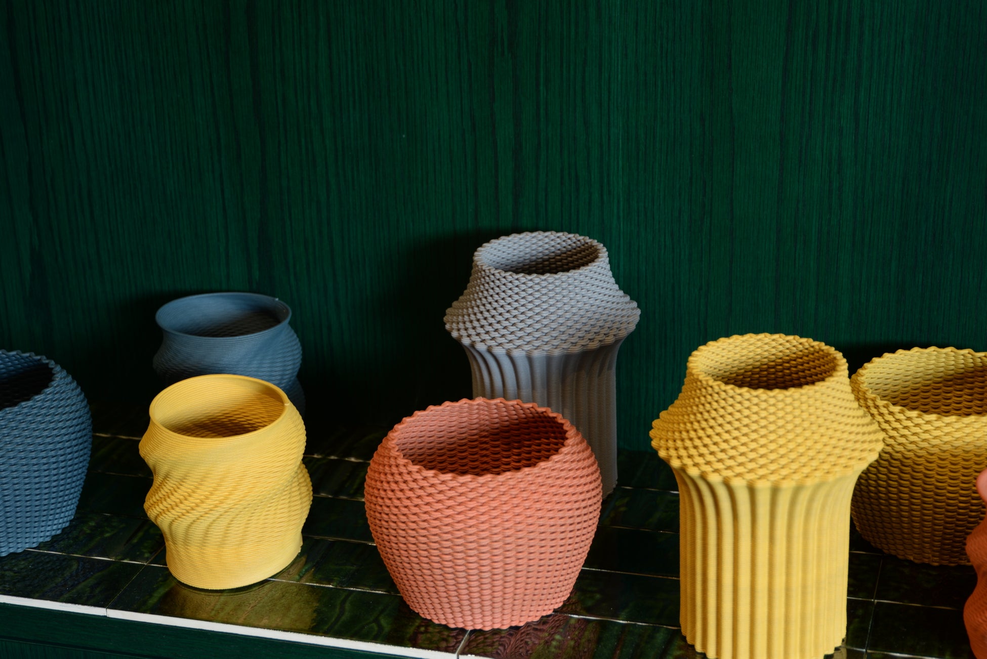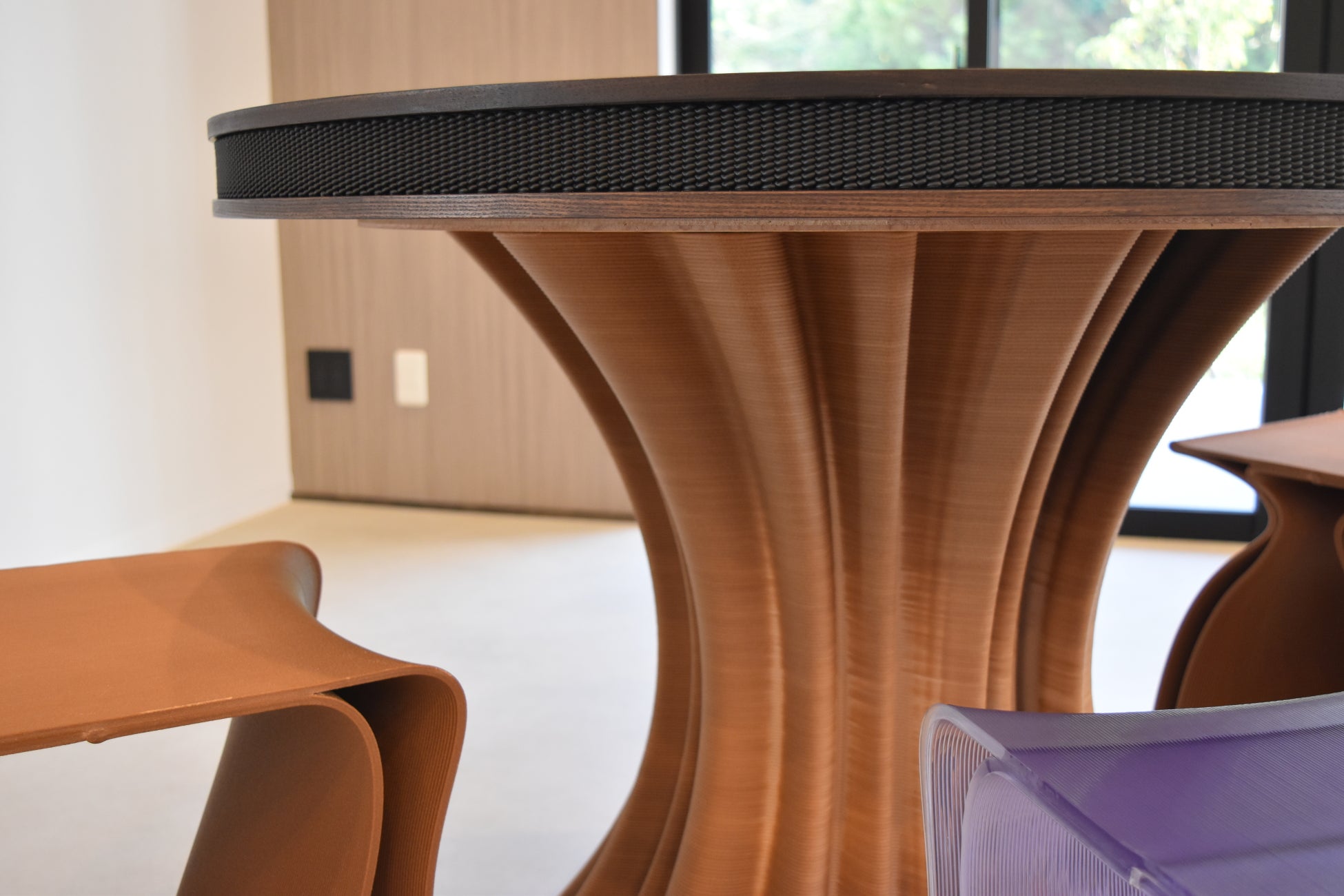 TABWD®を材料に使用した多くのプロダクトがあり、「テーブル」「スツール」「植木鉢」など大小様々なインテリアを3Dプリンターで製作してカタログ掲載で販売しています