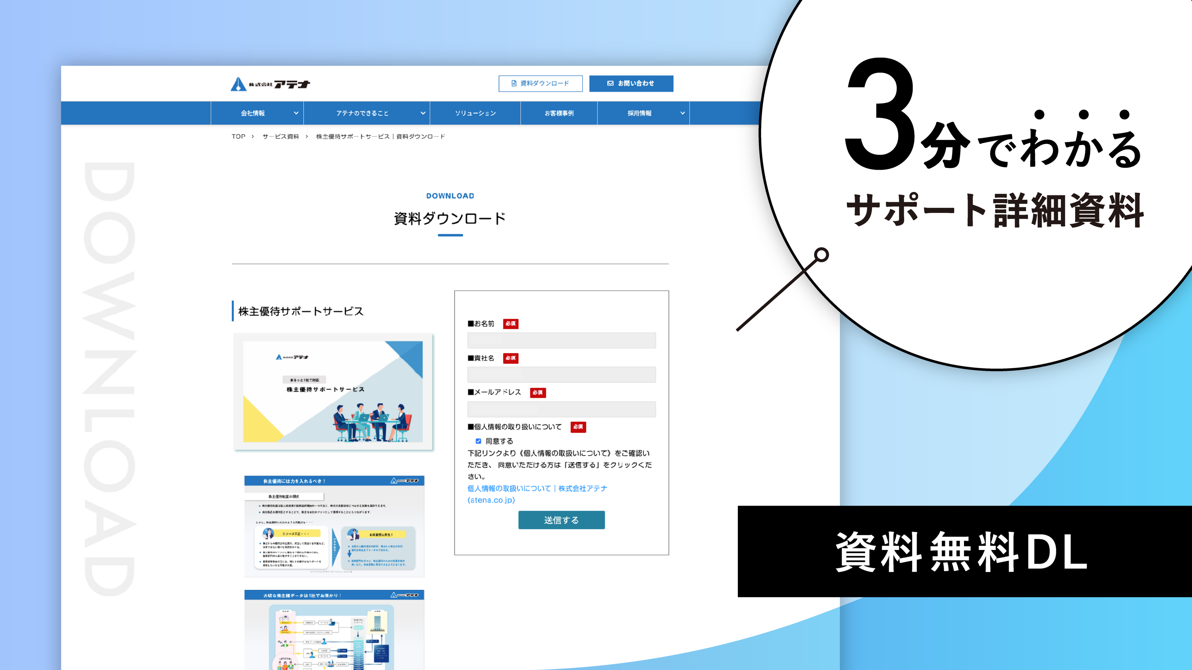 【株式会社アテナ】株主優待制度に関する総務担当者の負荷軽減のためのサポートサービスを強化!