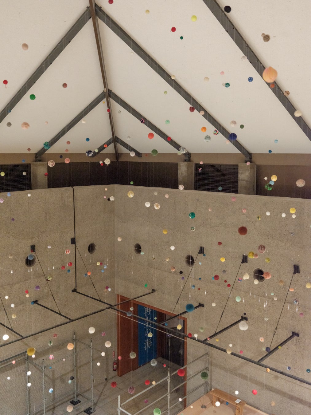 ③美術館内《糸の星》は、一般から糸玉を募集し、5500個を超える糸玉が海風クルーや