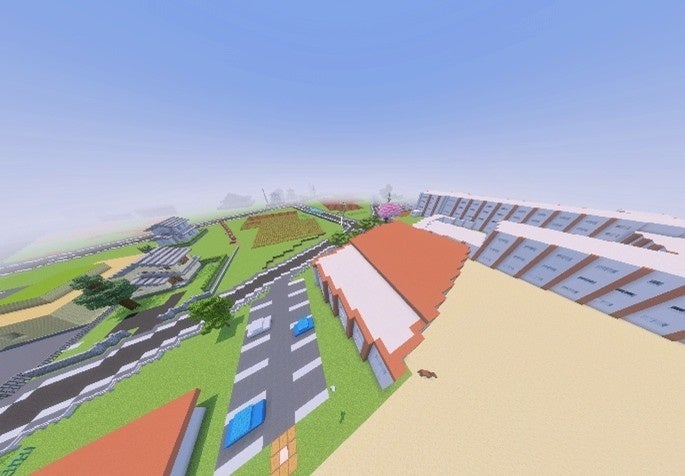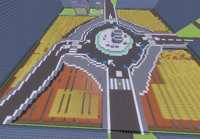 本取組は、前橋市が推進する通学路の交通安全確保の関連取組の一環として、前橋市および永明小学校の協力により実現したものです。交通安全教室で活用するコンテンツは、前橋市の3D都市モデル※2やエアロトヨタがクルマのビッグデータから作成した通学路上のヒヤリハット情報などを活用し、前橋国際大学がマインクラフト上で永明小学校周辺の仮想空間を再現したものです。授業では、永明小学校の児童が自ら操作し、近隣に開通した環状交差点(ラウンドアバウト)の利用方法や通学路上のヒヤリハットなどの身近な危険を仮想空間上で体験することにより、新たな気づきや学びを得ることを目指します。