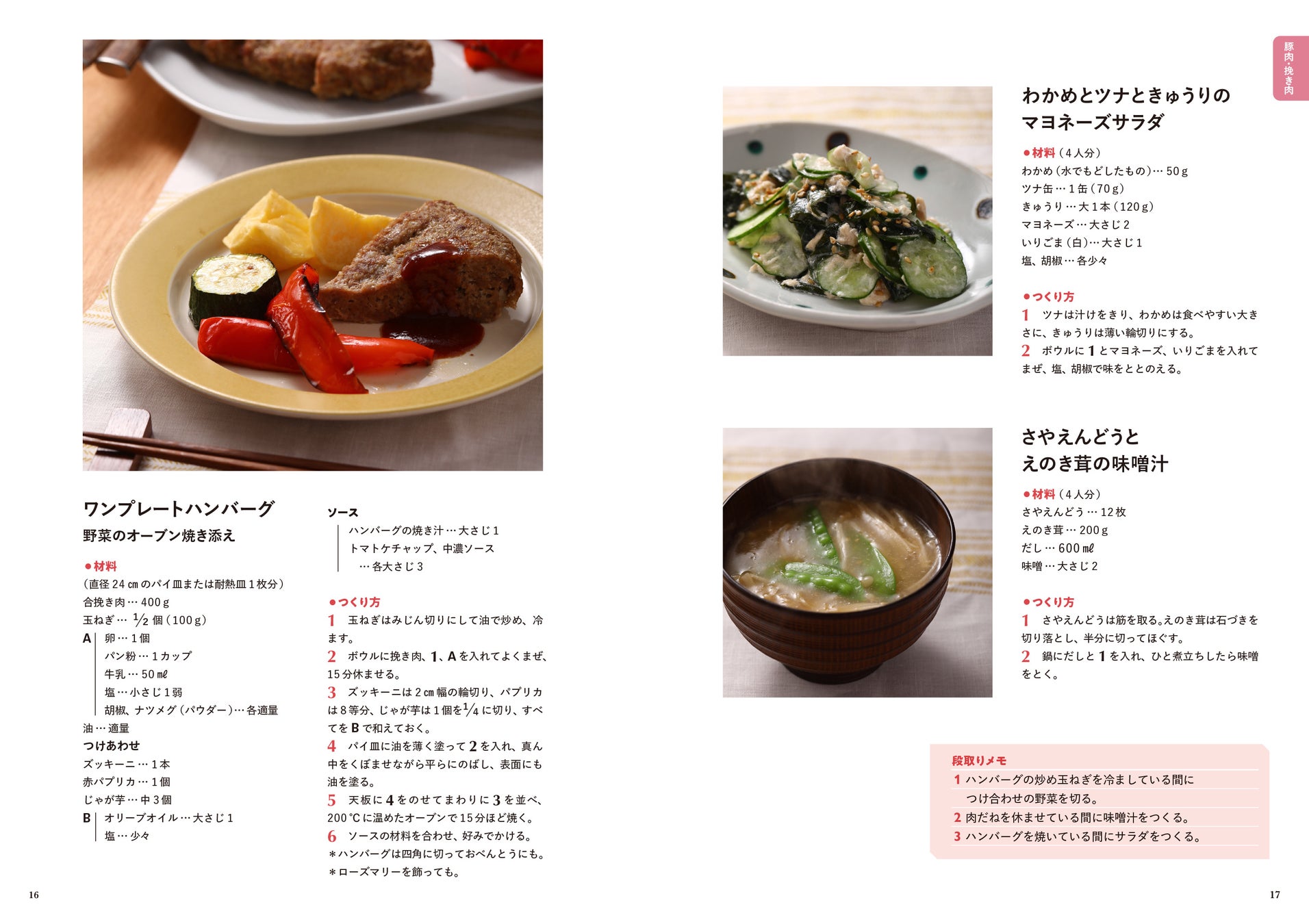 その中からオーソドックスな肉や魚の主菜、ボリュームのあるごはんもの、忙しい日もさっとつくりやすい麺類や鍋などをメインに、野菜や豆類たっぷりの副菜をバランスよく組み合わせた30献立、150レシピを紹介。一日にとりたい食品の目安、献立のたて方のヒントなど、家族が元気でいるための知恵と工夫が満載です。