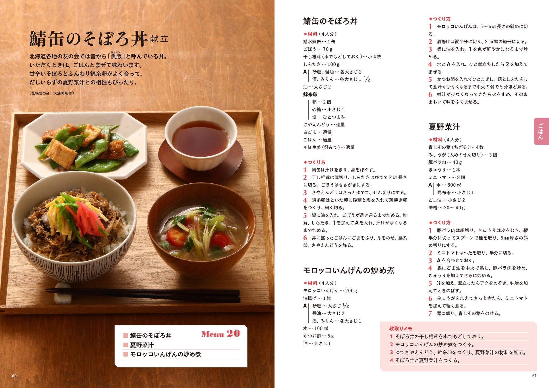 本書では一汁三菜などの王道の献立から、カレーや鍋や麺類まで、バラエティ豊かでとびきりおいしい献立を集めました。