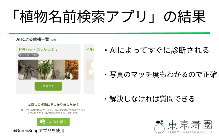 植物名前検索アプリの機能性について