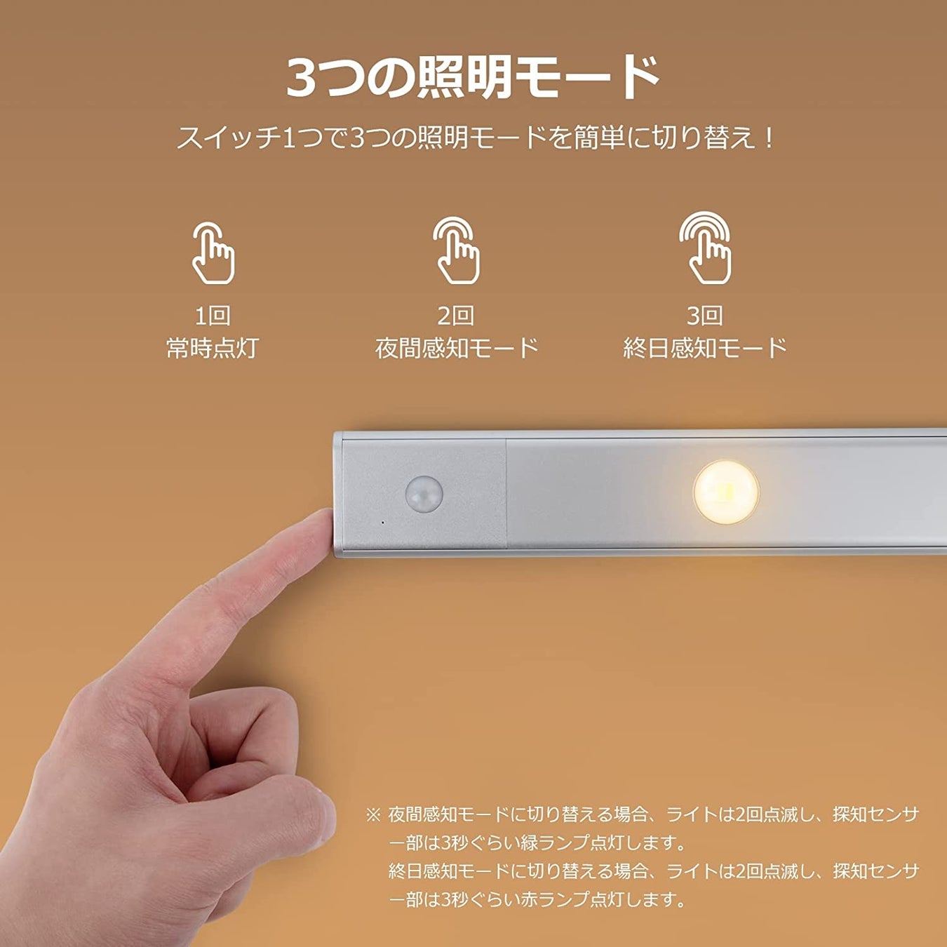 簡単なワンタッチボタン操作で照明モードを切り替えます。