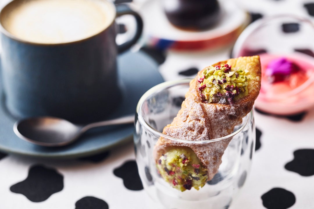 パティシェ特製のスイーツでは、イタリア発祥のペストリー菓子である【ピスタチオクリームとラズベリージャムのカンノーロ】に「出来たてリコッタ」を使用し、ピスタチオのリッチな味わいとリコッタチーズの爽やかな甘さを愉しめるアイテムとしてご用意します。その他、チーズを使用した【抹茶のスフレチーズケーキ】や【ローズマリー風味のチョコレートムース】もお愉しみいただけます。