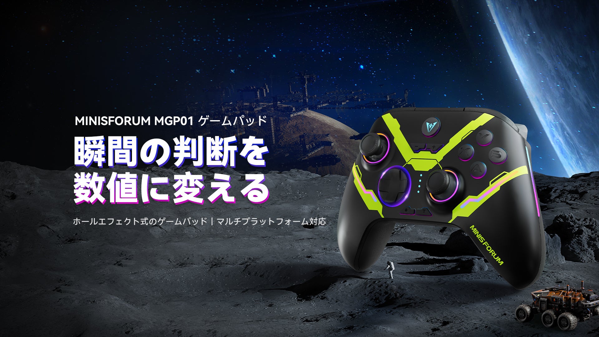 この度、Minisforumは、カーボン膜スティックとホールリニアトリガー搭載した全プラットフォーム対応のゲームパッド「MGP01」の発売を開始いたします。