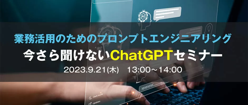 「今さら聞けないChatGPTセミナー」9/21(木)オンライン開催 求める回答を出すスキルを学んでDX促進