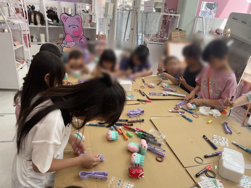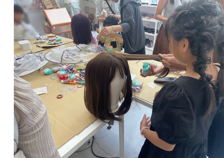 親子2組に1台ウィッグを用意しヘアカットモンスターを使ったヘアカットを体験していただきました。実際にその場でお子様のヘアカットをされる方もいらっしゃいました。お子様がデコレーションしたヘアカットモンスターを利用いただき、お子様にも楽しくヘアカットを体験していただくことができました。