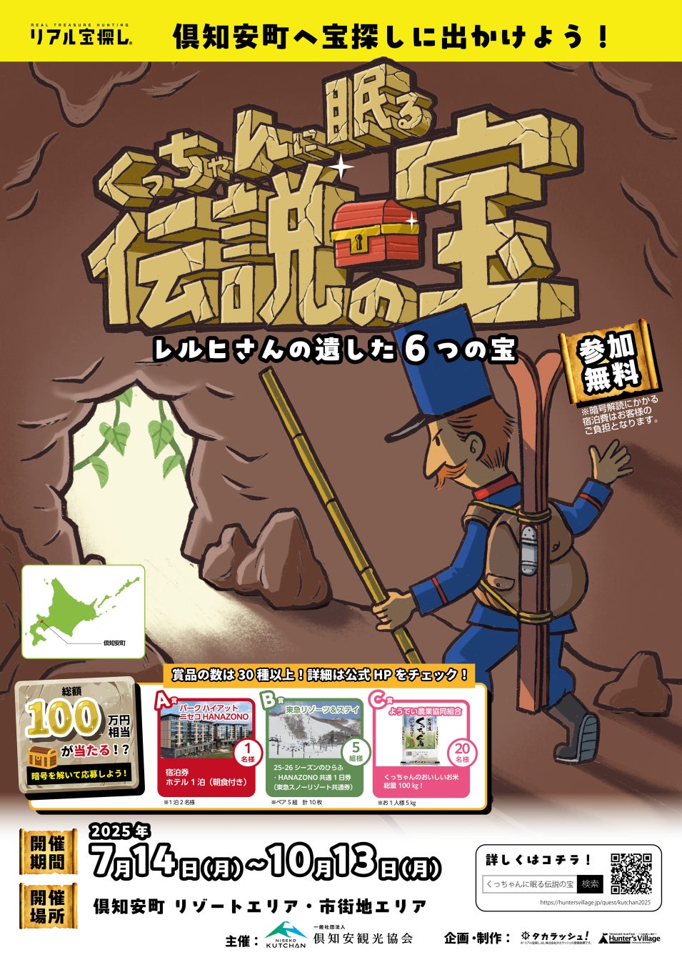 手がかりを元に、町中を巡りながら謎を解いていく企画で、倶知安の魅力を“再発見”する仕掛けになっています。企画制作は、年間200万人以上を動員する宝探し専門会社「タカラッシュ!」が担当。観光と遊び、そして学びを融合させたコンテンツとして、老若男女すべての冒険者が楽しめるイベントです。謎を解くのは、知識ではなくひらめき。皆さまの挑戦をお待ちしています!