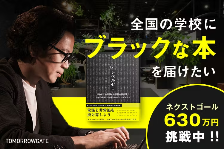 初日支援額が480万円突破! スバキリ商店プロデュースクラウドファンディング。子供たちに届けるビジネス書 “ブラックな本”。トゥモローゲート代表 西崎康平氏の初の著書『レベルゼロ』。