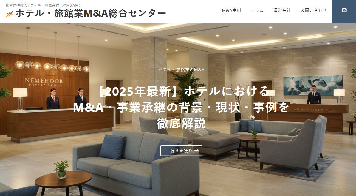 M&A仲介会社の株式会社M&A Do(所在地:東京都港区虎ノ門4-1-28 虎ノ門タワーズオフィス19階、代表取締役:濱田 啓揮)は、このたび国内で初となるホテル・旅館業界に特化した「ホテル・旅館業界M&A総合センター」を開設いたしました。本センターでは、ホテル・旅館業界の譲渡企業(売り手企業)からは一切の仲介手数料をいただかない“完全無料”のサポートを提供し、M&Aによる事業承継・事業再編を強力に支援してまいります。