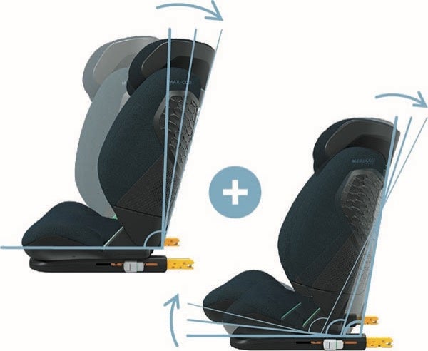 マキシコシが誇るジュニアシート「RodiFix Pro2i-Size(ロディフィックスプロ2アイサイズ)」は、安全性と快適性を追求した最新の製品です。ジュニアシートとしては珍しい車のシートと連動したリクライニング機能が搭載され、最大22°の背面リクライニングに加えて、最大16°、3段階の独立リクライニングが可能です。