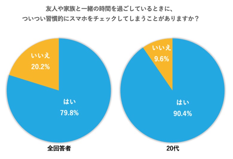 日本の20~50代の80%、20代は90%以上が「友人や家族と一緒に過ごす時間にスマホをチェックしてしまう」