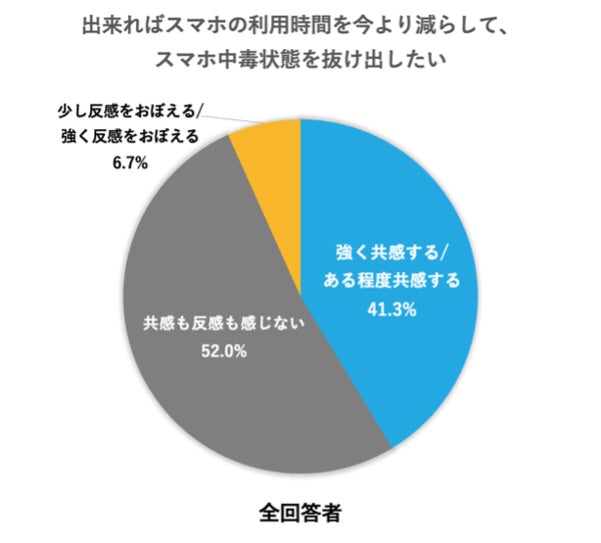 ■41%が「出来ればスマホの利用時間を今より減らして、スマホ中毒状態を抜け出したい」と回答